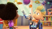 In "The Longest Yardwork", Ari made Ellie try out the jet shoes but she is worried and asks him if they're safe. Ari informs her that there are a few things to know about the controls. Then his mom came and tell him that he forgot to put an off-switch on his comic book sorting machine and Ari begins to help her. Ari tells Ellie that he'll be back and gives her the controls.