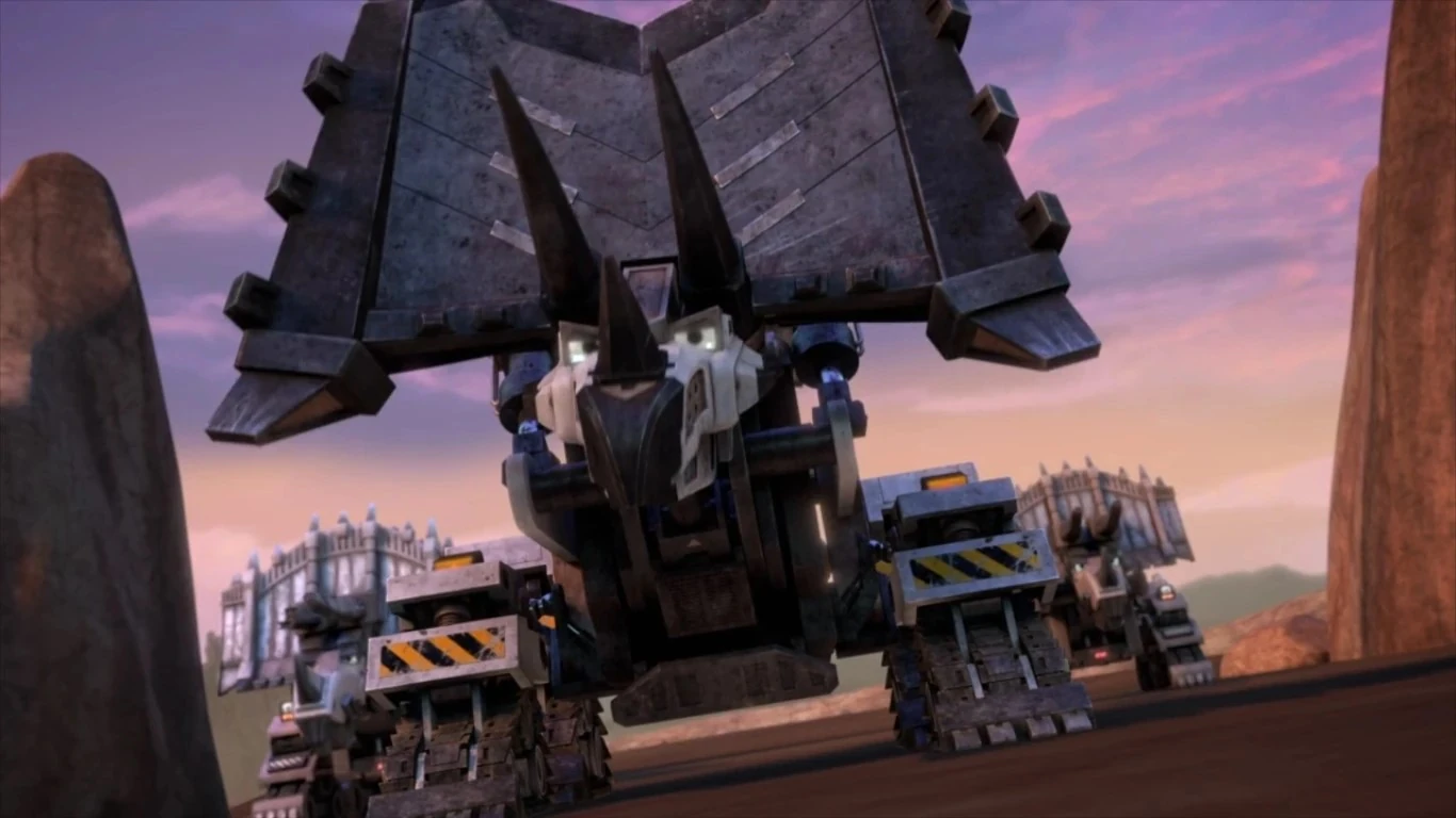 Blayde and Dozer were part of the same herd until it was attacked by the Tyrannosaurus Trux D-Structs, an action that would change Blayde for the worse. Developing a mindset not unlike D-Structs', Blayde seized a territory and, with the aid of minions Prong and Horn, terrorized anyone who dared to take up residence, including fellow Dozeratops. After suffering her bullying on several occasions, George went to Dozer and his friends for help for himself and his own friends Zera and Tops. Blayde was surprised to see her old friend in this group, and moreso when she discovered their construction of metal mounds that she couldn't tear down. Not to be defeated, she abducted George and had him hidden away with one of her minions, and refused to release him unless Dozer and the others tore down the metal mounds.