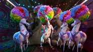 Esmeralda, Esperanza and Ernestina are beautiful horse triplets from Spain who look, sound and dress exactly alike. However, their precision performance needs some improvement and the Zoosters provide the enthusiasm and encouragement to perfect their act. They seem to be very fond of Marty when they wanted to paint him white and pink, and are presumably the ones who decorated him in polka-dots.
