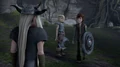 As the worst freeze in Berk disappears, most of the paralysis present is now gone and Berk's residents return to the village, as Stoick and Gobber repairs the damages. It's still revealed that Snotlout's paralysis hasn't worn off and the Twins and Gustav continue to make fun of him. Hiccup and Toothless with Trader Johann fly to his fixed and returned ship. To return the favor, Trader Johann offers Hiccup a bottle of large ink that he promised to give to Hiccup in the episode Dragon Flower. Hiccup thanks him and Johann tells him that there's actually a wonderful story that goes with it. Hiccup silently tells Toothless to go ahead and fly away from Johann, while Johann wonders where they are going. He hasn't finished his story yet and tries to convince them to stay. Hiccup just ignores Johann's story and the episode ends.