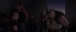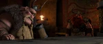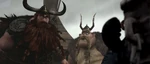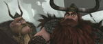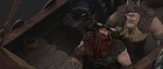 Gobber and Stoick horrified to learn too late that the Red Death is the real monster, not the dragons.