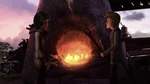 The next morning, Hiccup is up early to work on the gear for Toothless. Heather is awake too and greets him, she then gives Hiccup advise, to forge a shorter connecting rod that'll push Toothless' saddle that'll incredibly increase their speed. Hiccup sees it as a great idea and expresses his joy that this will finally compete against Stormfly gaining the upper hand on them. Hiccup decides to test it out now, along with Heather.
