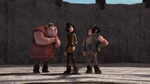 Meanwhile, Astrid is feeding Stormfly loads of chickens, which is the source where her speed strengthens, to prepare Stormfly for tomorrow. Suddenly, they hear something unusual outside and Astrid decides to check it out. A person emerges behind her, attempting to flee the scene, Astrid notices it and shocks her to identify it to be Heather, running back towards Hiccup's home.