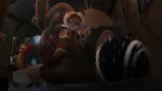 While watching Alex, Marty, Melman, and Gloria sleep in Casa del Wild, they hide in various leafy branches on a tall tree while King Julien and Maurice watch from another branch below them. When King Julien complains loudly about how long the sleep will be, the giants wake up causing the lemurs to hide beneath the leaves, and Julien and Maurice to hide behind leafy fans.