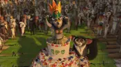 Later in the day, after the fossa have been chased away for good, the lemurs decide to hold a "Thank You" feast for Alex, Marty, Melman, and Gloria, with the penguins preparing fish for Alex which he likes, causing the lemurs to react by cheering. As Marty gives a toast to Alex, everyone gives a cheer to Alex as they start drinking salt water drinks and spitting them out. When it was time for the zoosters to go home, the lemurs say their goodbyes to their new friends.