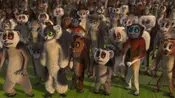 The crowd of lemurs appear only towards the beginning of the movie where the now grown-up Alex, Marty, Melman, and Gloria are about to leave Madagascar and back to New York. The giants bid their pint-sized primate friends goodbye, until Alex tells them that they should call before visiting Manhattan, when he sees two lemurs picking their noses and exchanging boogers. When Maurice brings in the farewell cake from which King Julien pops out from, many of the lemurs find King Julien disguised as a lady attractive. King Julien proclaims to his subjects that he will let Stevie be in charge of the kingdom, which they remain silent for they don't understand the concept, until King Julien hears from Stevie and declares in "gecko" that they should have cake. Mort shows up with his luggage full of scissors and hand cream, so Julien demands some of the lemurs to stop him from going inside the plane, causing Julien taking the giants go inside the plane run by the penguins. The penguins' leader, Skipper, commands some lemurs to launch the plane. A small portion of the lemurs push the plane like a slingshot successfully letting it fly. Once the plane has left, the lemurs who didn't board on the plane cheer for they've done a good job getting a wrecked plane to fly.