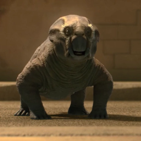 In "Lab Partners: Part 1", a Lystrosaurus fetus was in a chamber as Darius and Yaz explores through the underground lab.