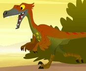 When the Tarbosaurus was revived from a fossil by Odlulu with the Dino Key, he attacks Odlulu, Fritz and other dinosaurs to chase them down where the Wanderers searching for Wizard Amber's other bones and fossils, causing Waldo tells Woof to jump into his hat safety. After something scared them, the Tarbosaurus comes to roar and the Wanderers were horrified when they see him. Wizard Amber describes that he is a main predator to all the preys (mostly the other dinosaurs), which Waldo decides to build the Dino-Wrangler-anator so he can wrangle the Tarbosaurus to protect other dinosaurs while Wenda and Wizard Amber save Odlulu and Fritz from the Pterodactyl to get the key.