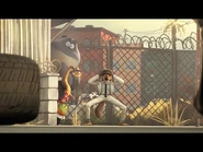 With their car destroyed AGAIN, the Bad Guys were forced to take the bus to get to the Parole Office. The fuzzed up Webs, who is being held by Wolf, believes something to be not right and asks her friends if they took the right bus. This causes them to indirectly reveal they had no idea there was more than one bus. They were dropped off in the middle of the desert, miles from the city. But Piranha needed to go to the bathroom, and immediately runs to a gas station where there is a restroom, but also a line of scary bikers waiting there, too. Piranha tries to open the door, but it is locked at the moment, and Piranha explained to the Parole Officer that the biker went crazy on him for no reason, despite the fact Piranha actually cut in line, and the lead biker pulled him away from the door, but Piranha pulled the door off its hinges, and the biker inside screams in surprise. Piranha said that, being a master of conflict resolution, he peacefully and gracefully de-escalated the situation, but he actually reacted angrily to the lead biker calling him "chum bucket", and attempts to attack the lead biker, and Wolf was too late to stop him. Later, Wolf and The Bad Guys were beaten senseless and buried up to their necks by the bikers, which Wolf said was a relaxing mud bath rewarded to them for Piranha's efforts. Piranha urinates in the sand, and Webs noticed him smiling, and Piranha said he's doesn't need to go to the bathroom anymore, disgusting his friends.